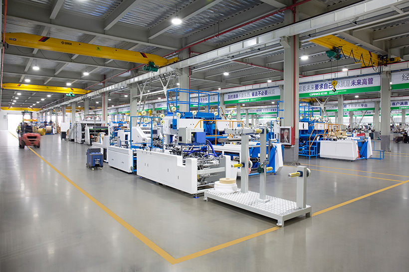公司借鑒德國(guó)技術(shù)開發(fā)出 新世界C款 高速卷筒尖底紙袋機(jī)。該機(jī)由卷筒原色紙或者印刷好的卷筒紙張如牛皮紙,油光紙張,食品淋膜紙,等紙張?jiān)跈C(jī)器上完成預(yù)刺,上邊膠,折邊成形,紙袋拉斷,折底,成品袋輸出一次完成。并根據(jù)客戶的需要,加入的伺服袋身預(yù)壓線功能,該功能讓物品入袋后便于封口,展示外形更加美觀。本機(jī)操作方便,是生產(chǎn)各種不同紙袋,面包袋,干果袋的理想設(shè)備。